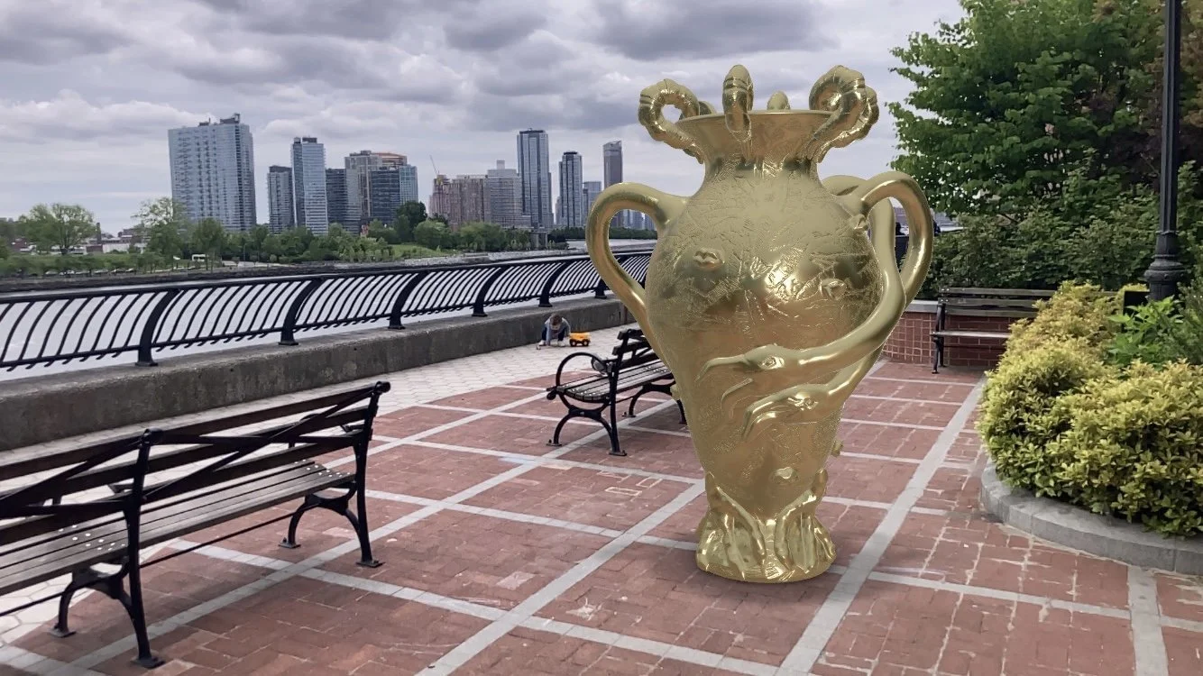 Roxanne Jackson has exhibited with Room57 since the inception of our gallery in 2020, where she was featured in our three-person booth display at Design Miami 2021. Her work has garnered critical attention for its striking maximalist quality, detailed with playful and macabre allusions to mythology and kitsch. Keeping in step with Jackson’s steady climb as an emerging, highly sought out New York-based artist, we at Room57 have collaborated with the artist and AR studio UniqueBoard to make her work more accessible through digital form.